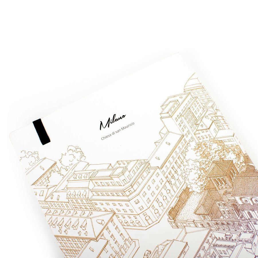 Тетрадь с листами из каменной бумаги Милан из специальной коллекции Italian Beauty дизайнеров Pininfarina в сотрудничестве с Francesco Corni Foundation, посвященной красоте Италии. Франческо Корни - выдающийся дизайнер из Модены, посвятивший свою жизнь популяризации истории и архитектуры. Используя трехмерное перспективное видение, он изучает наиболее значимые здания каждого города, выбирает наилучшую точку обзора, чтобы подчеркнуть их особенности, и прорисовывает детали в древней технике калиграфии. Для Милана дизайнер выбрал центральной точкой церковь Chiesa di san Maurizio на улице corso Magenta и сиреневый цвет. Белая мягкая обложка фиксируется черной резинкой. Тетрадь размером А5 (14х21 см) содержит 64 листа в линейку. Листы сделаны из каменной бумаги, экологической альтернативы обычной целлюлозной бумаге, которая не требует вырубки деревьев, использования воды и агрессивных химических веществ, тем самым защищая окружающую среду. Она состоит из 80% камня (карбоната кальция) и на 20% из связующего его нетоксичного полиэтилена высокой плотности (HDPE). Это бумага нового поколения с уникальными характеристиками. Каменная бумага на 100% водоотталкивающая, ее можно мыть. Жидкости, включая масло, не изменяют ее структуру, поскольку она не содержит древесных волокон, которые поглощают жидкости, в следствие чего традиционная бумага покрывается пятнами, деформируется и разрушается. Каменная бумага устойчива к разрыву, что также способствует ее долговечности. Она имеет приятный бархатистый эффект и не отражает свет. Плотность бумаги 140 гр/м2. Ляссе черного цвета. Сделана в Италии.