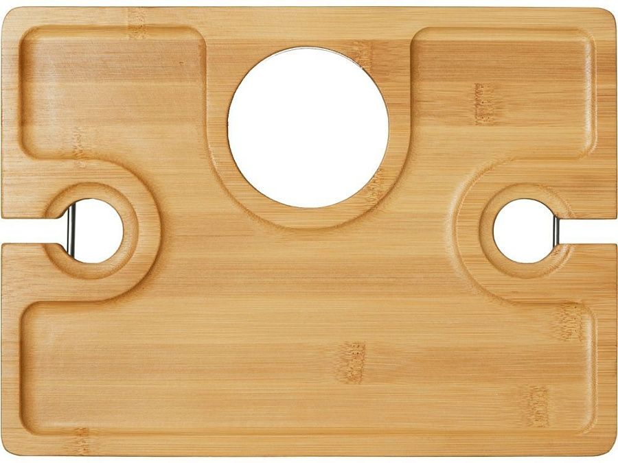 - Надежная фиксация напитков: Два углубления для бокалов и центральное отверстие для бутылки – забудьте о пролитых напитках!