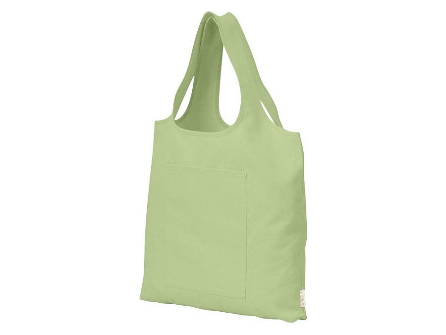 Вместительная сумка-шоппер из очень плотного переработанного хлопка с широкими лямками и большим наружным карманом 20 x 25 см спереди.