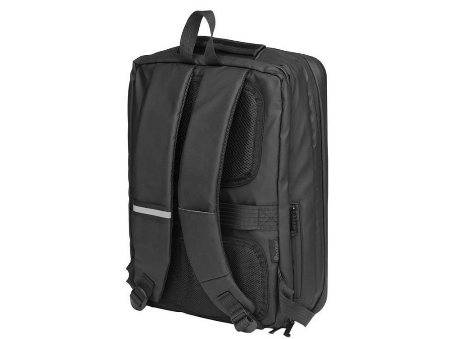 Водостойкий бизнес-рюкзак с пластиковой панелью спереди выглядит стильно и обеспечивает бережное хранение ваших личных вещей. Подходит для передвижений по городу и деловых поездок. 2 вместительных отделения позволяют разместить все необходимое: большое отделение для одежды с фиксирующими ремнями и органайзером, меньшее отделение с карманами для ноутбука и планшета и сетчатым органайзером. Несанкционированный доступ к содержимому вашего рюкзака будет затруднён благодаря кодовому замку и прочной пластиковой панели спереди. В рюкзаке предусмотрено много дополнительных удобств для использования: