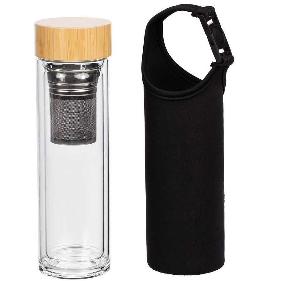 дерево; бутылка - боросиликатное стекло, чехол - неопрен; ситечко - нержавеющая сталь; крышка - бамбук, пластик; подставка - бамбук; игрушка-антистресс - дерево; коробка - микрогофрокартон