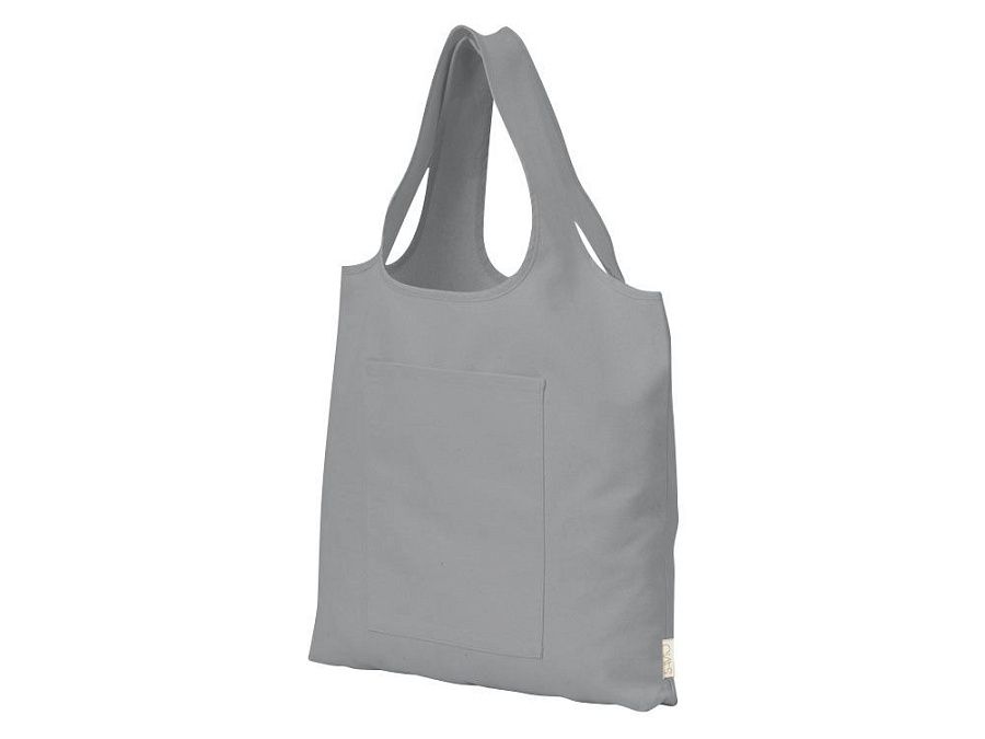 Вместительная сумка-шоппер из очень плотного переработанного хлопка с широкими лямками и большим наружным карманом 20 x 25 см спереди.