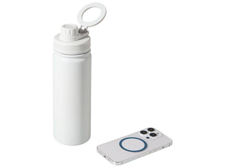 Современные технологии и стильный дизайн объединились в одной бутылке! Спортивная бутылка с магнитным держателем MagSafe поможет вам всегда держать водный баланс в норме и сделает жизнь удобнее. Благодаря магнитному держателю бутылка надежно удерживает iPhone 12 версии и новее. Магнитное крепление подходит также и для любого смартфона, т.к. в комплекте есть металлическое кольцо с клейким слоем. Кольцо наклеивается на заднюю крышку или чехол смартфона, и вы можете крепить смартфон к бутылке за секунду. Объем 600мл.