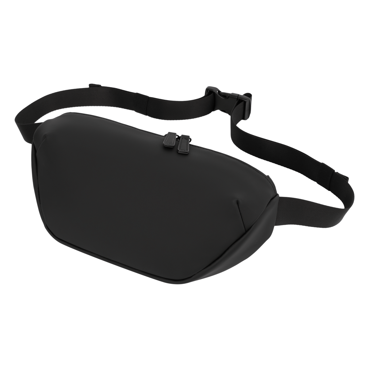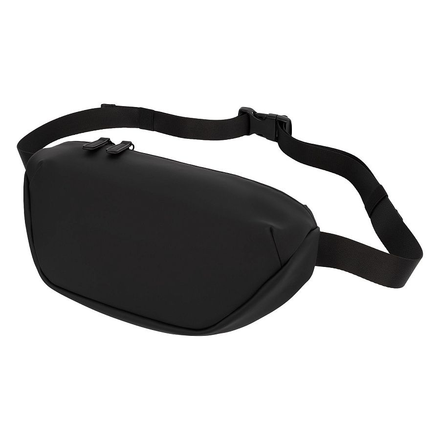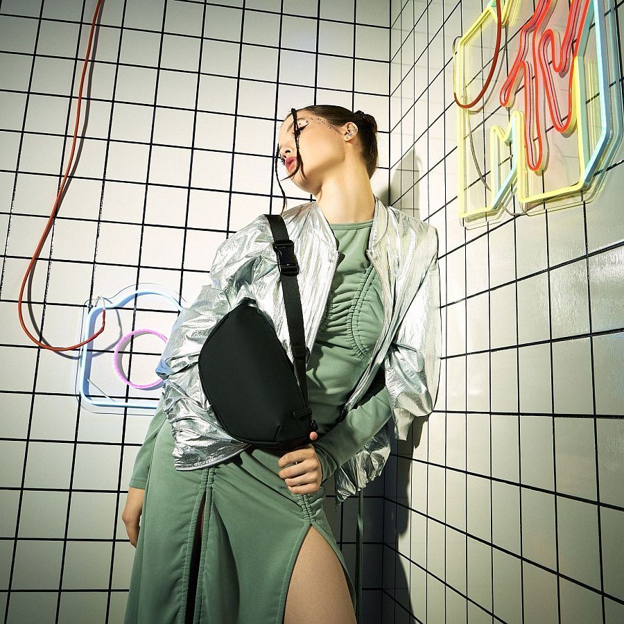 Внутри — карман-органайзер, снаружи, на тыльной стороне, — скрытый карман. Регулируемый ремень позволяет носить сумку на плече, через грудь или на поясе.