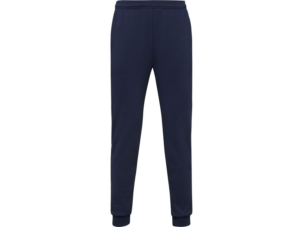 Спортивные брюки с эластичным поясом и шнурком. Боковые карманы закрываются на молнию. Контрастные лампасы белого цвета. Низ с манжетами из риба 1х1. Может быть с комбинирован с курткой Leros.