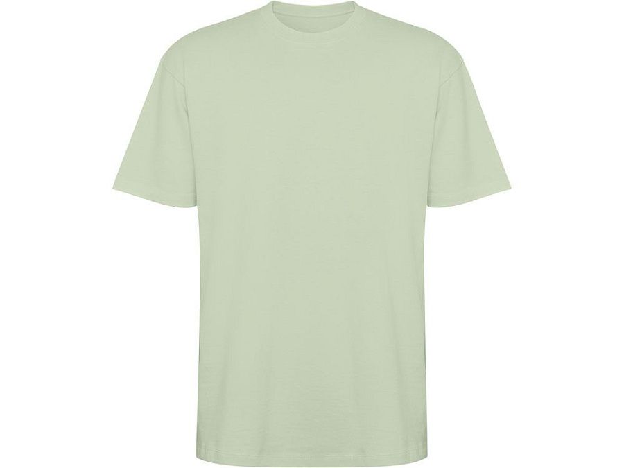 Оверсайз футболка с коротким рукавом. Круглый вырез горловины обработан рибом 2х1. Боковые швы. Широкая двойная отстрочка по рукавам и низу.