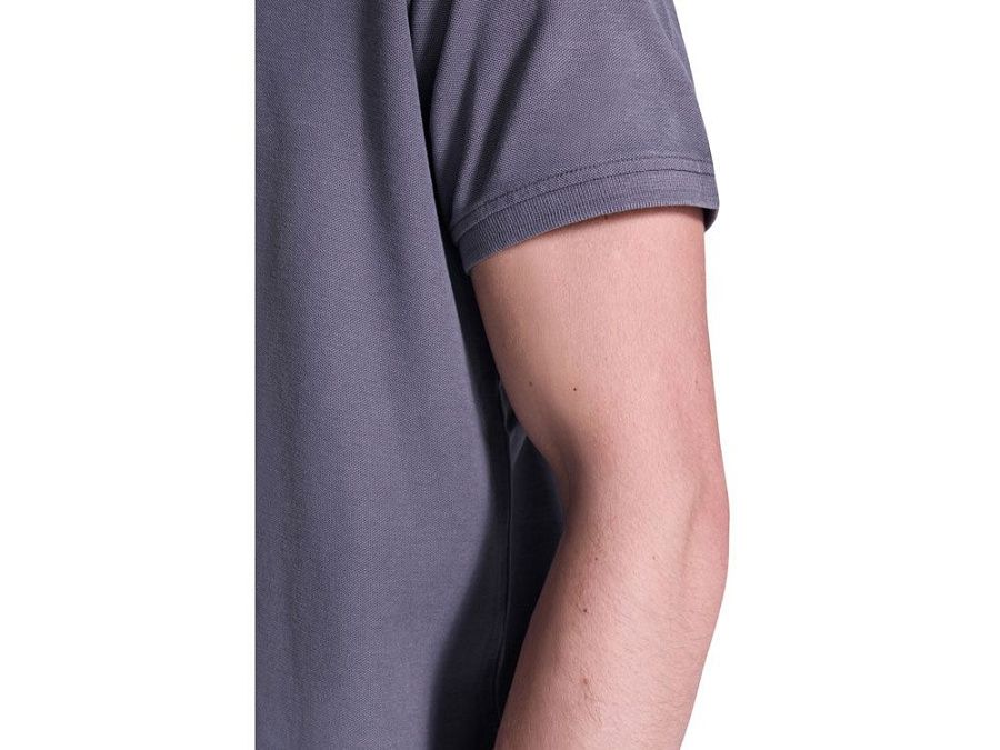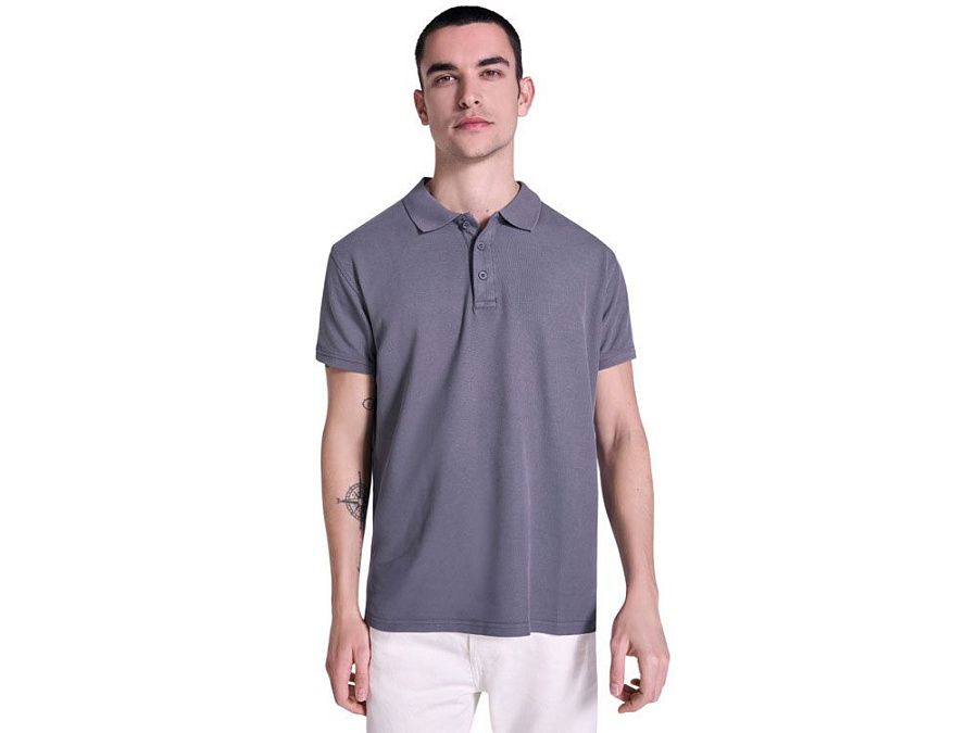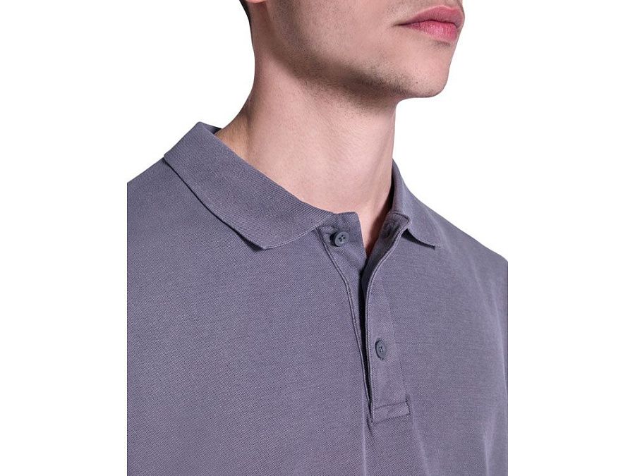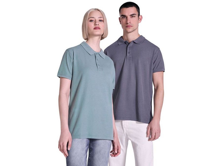 Унисекс поло с коротким рукавом, 100% хлопок, аксидная стирка. Рибовый воротник и манжеты по рукавам, боковые разрезы. Отстрочка в тон по планке