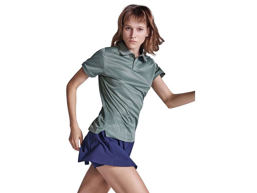 Женское приталенное полос коротким рукавом из технологичного полотна. Рибовый воротник 1х1, застежка на кнопки. Отстрочка в тон. Рибовые манжеты.