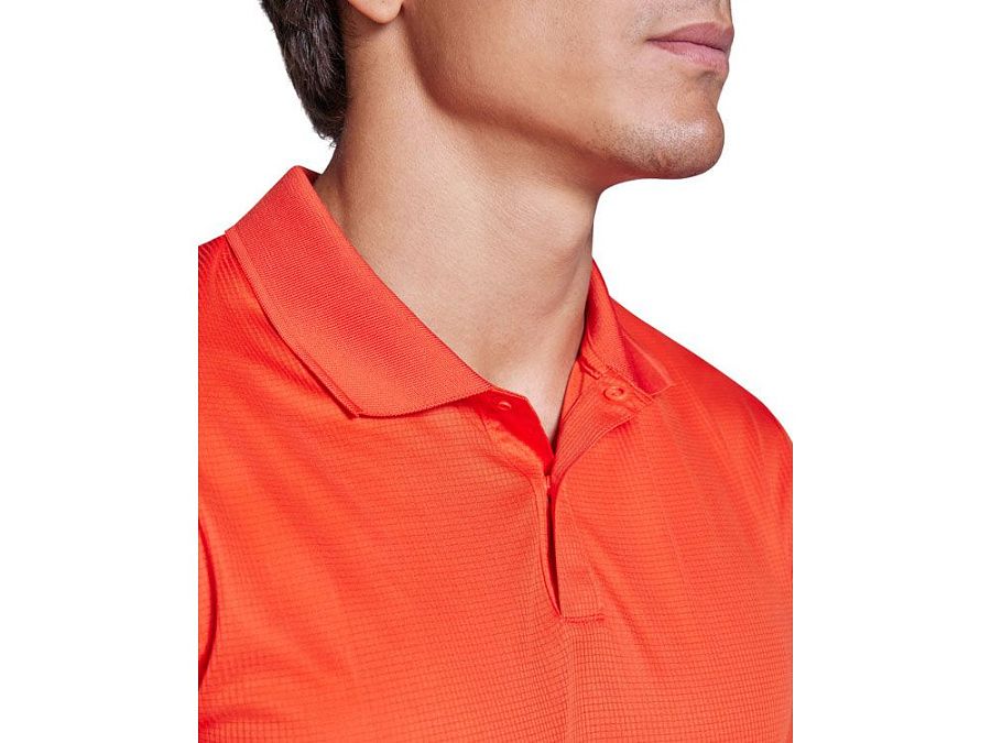 Мужское поло с коротким рукавом из технологичного полотна. Рибовый воротник 1х1, застежка на кнопки. Отстрочка в тон. Рибовые манжеты.