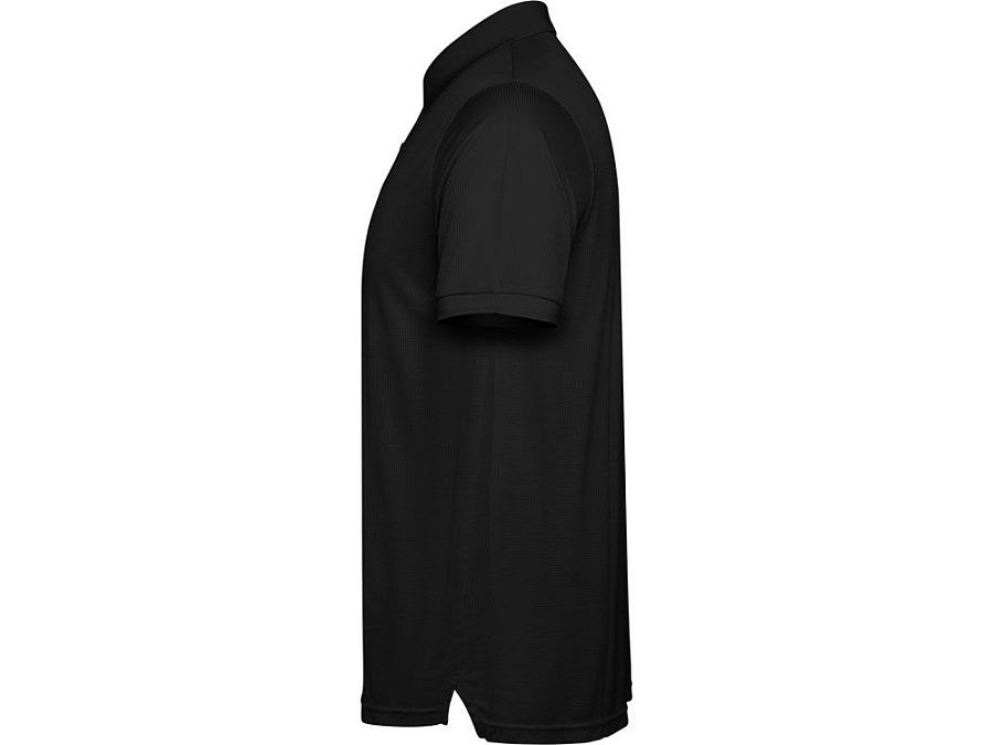 Мужское поло с коротким рукавом из технологичного полотна. Рибовый воротник 1х1, застежка на кнопки. Отстрочка в тон. Рибовые манжеты.