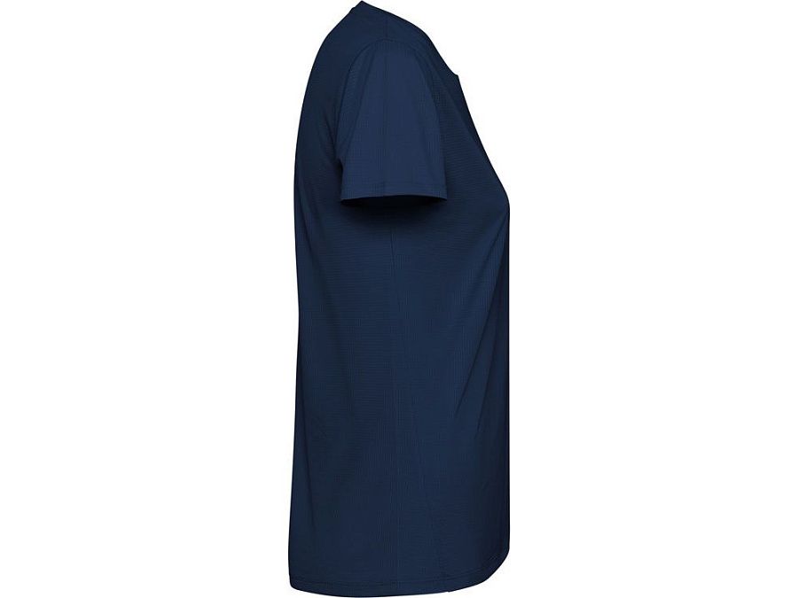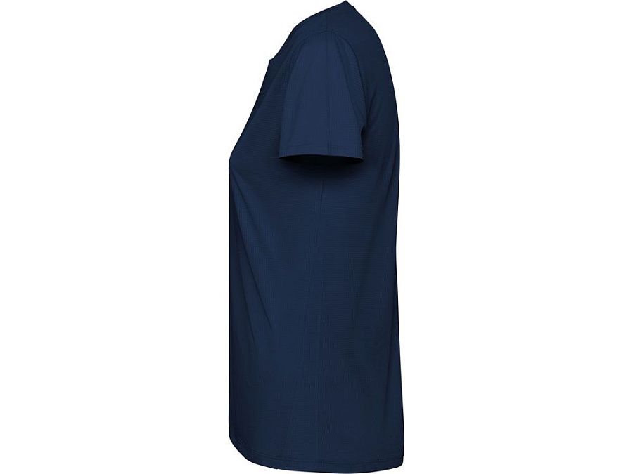 Женская футболка с коротким рукавом из технологичного полотна. Отстрочки в тон. Спинка с удлинением. Боковые швы со смещением вперед.