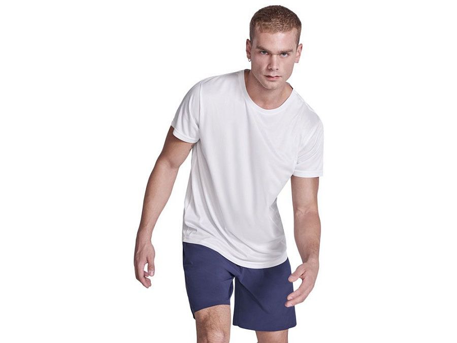 Мужская футболка с коротким рукавом из технологичного полотна. Отстрочки в тон. Спинка с удлинением. Боковые швы со смещением вперед.