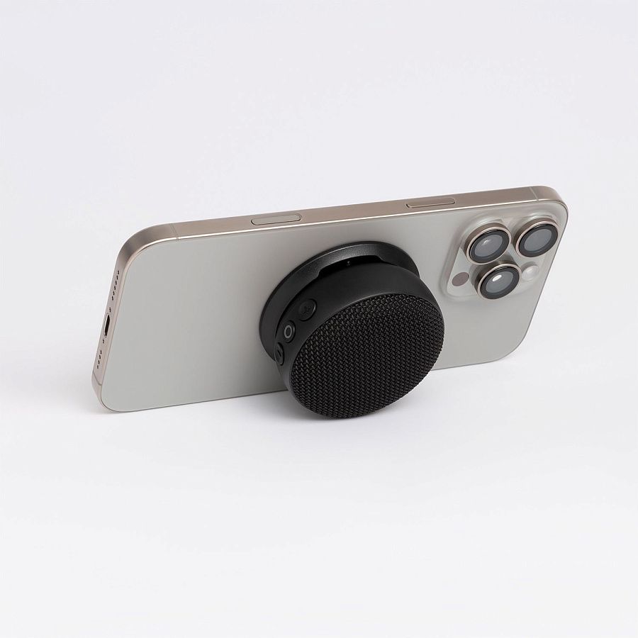 Благодаря трём вариантам крепления – зажим, карабин и магнитное крепление (совместимо с MagSafe) – SnapBeat становится неотъемлемой частью вашего стиля. Зафиксируйте её на одежде, рюкзаке или даже на смартфоне в качестве стильного поп-сокета. А когда захочется посмотреть видео, колонка легко превращается в удобную подставку для телефона.