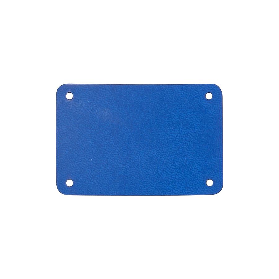 Шильд 4 х 6 см для кастомизации пледов и других изделий. Матовый материал с гладной фактурой и однородным цветом, подходит для тиснения и гравировки (CO). Установка производится на металлические хольнитены (заклепки) по углам.