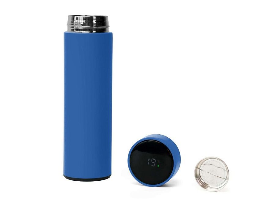 Термос выполнен из нержавеющей стали и покрыт цветным soft-touch покрытием. Его особенность — инновационная крышка со встроенным термометром и LED-дисплеем, который отображает температуру напитка внутри.