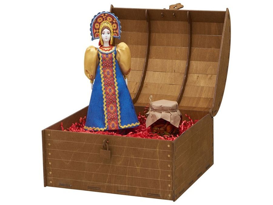 4. Деревянный сундук с изящным замочком превращает вручение подарка в особый ритуал. Дополнительное брендирование шильдом спектрум делает презент эксклюзивным и памятным.