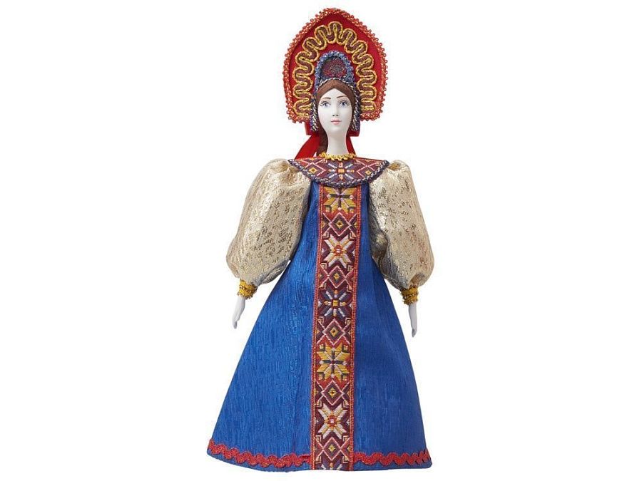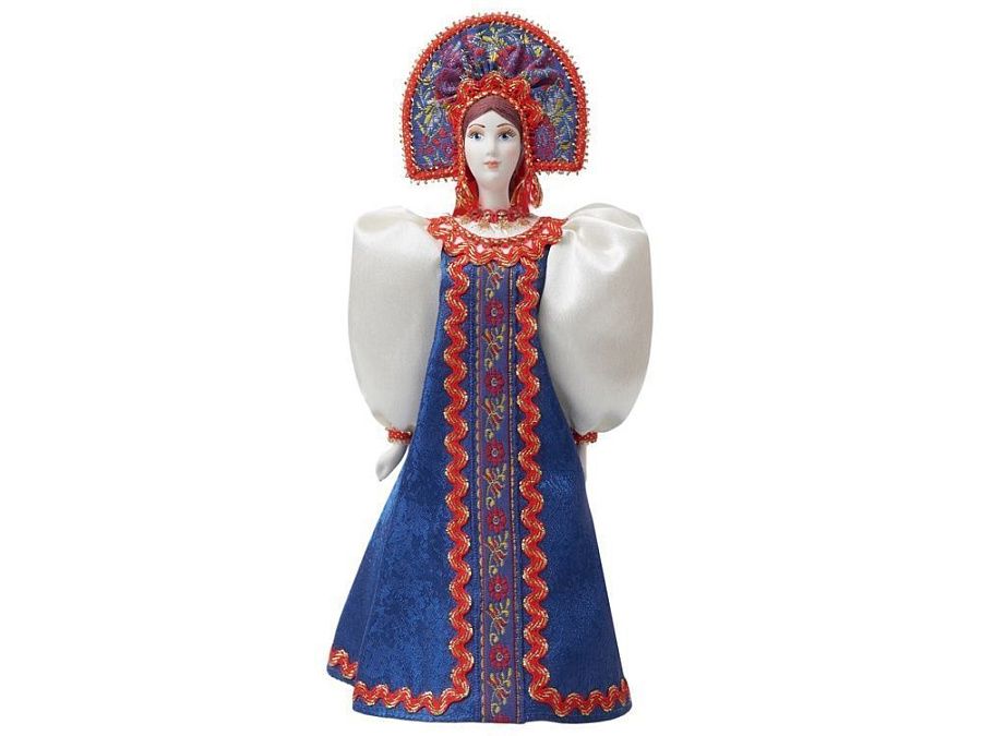 - Фарфоровая кукла в народном костюме ручной работы: расписной сарафан и кокошник с традиционной вышивкой воссоздают образ русской красавицы.