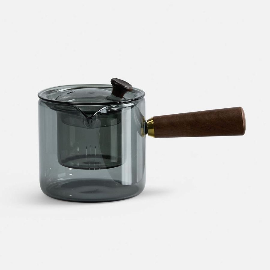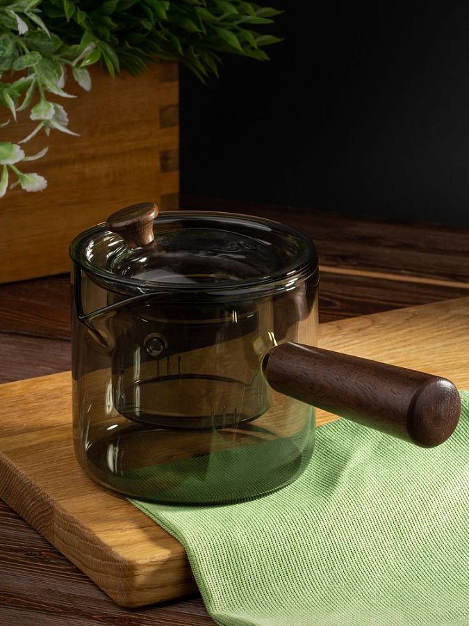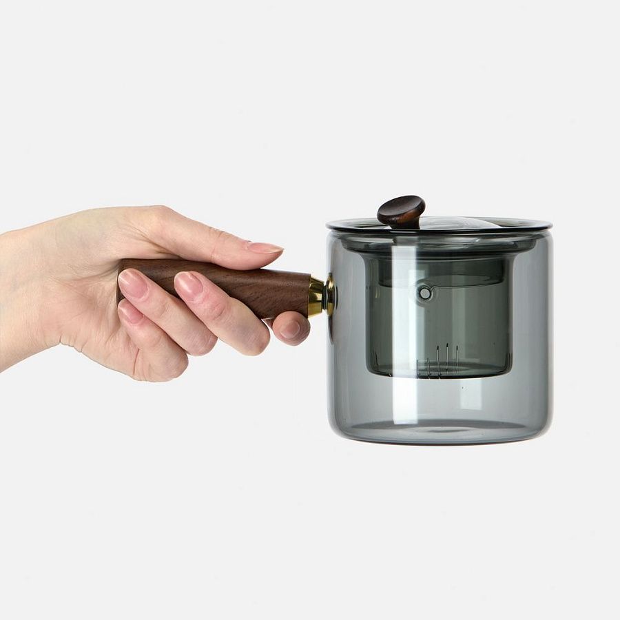 Проводник в мир спокойствия — чайник-ковш Hazy. Его мягкие линии, приглушенные цвета, стильная комбинация стекла и дерева создают атмосферу туманного утра, когда хочется укутаться в плед и насладиться чашкой горячего чая. Стеклянное сито с узкими прорезями поможет заварить чистый чай без чаинок, а эргономичная ручка — с удобством использовать чайник, не боясь обжечься.