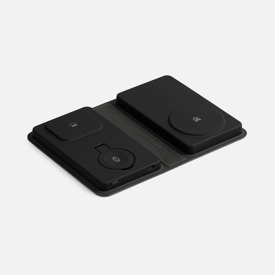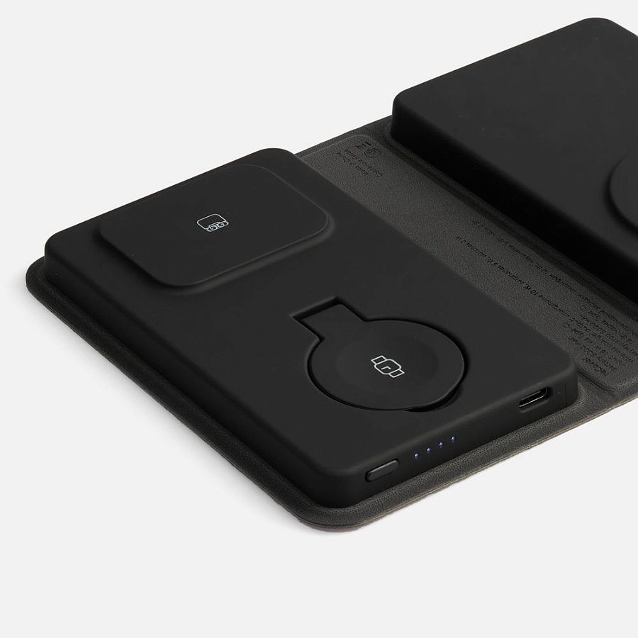 reCover — компактное технологичное устройство, которое эффектно сочетает в себе внешний аккумулятор и многофункциональную станцию беспроводной зарядки. Девайс не требует подключения к сети для зарядки без провода, поэтому его можно использовать как в офисе, так и в дороге.