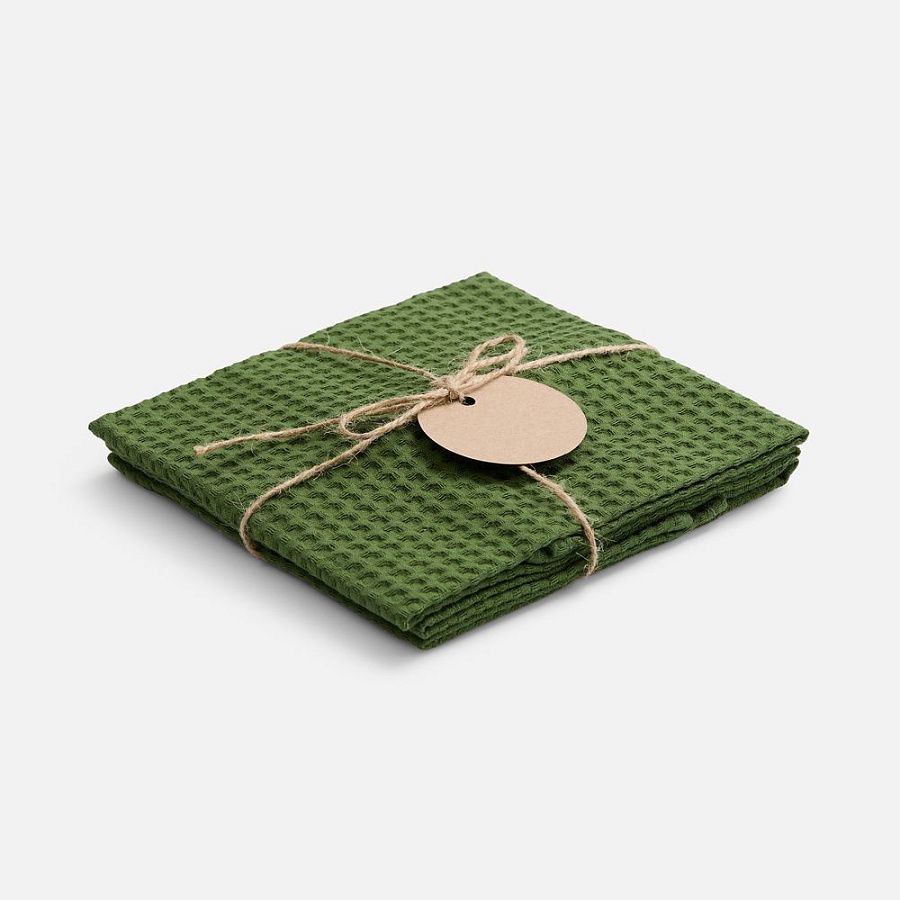 В набор входят 2 кухонных полотенца, перевязанных бечевкой с картонной биркой, на которую можно нанести логотип.