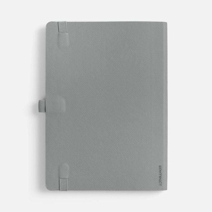 Ежедневник с гибкой обложкой, выполнен из материала Nice Touch, серый СС, дополнен цветными ляссе и петлей-резинкой для ручки.