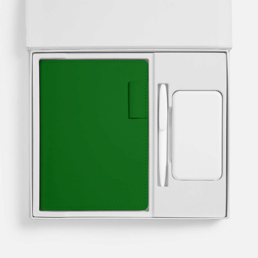 Подарочный набор Tweed, зеленый (ежедневник, ручка, аккумулятор)