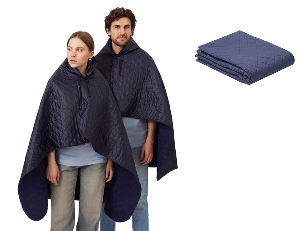 На внутренней стороне из флиса приятно и тепло сидеть, а наружная сторона из полиэстера с водоотталкивающим покрытием не позволяет пледу намокнуть или сильно испачкаться. Для больше удобства использования пледа во время дождя в комплекте идет капюшон, который фиксируется с помощью " липучки". Накинув плед на плечи, застегните его на кнопки вверху и наденьте капюшон. Вы не промокните во время неожиданного дождя!