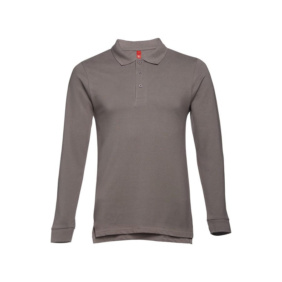 Мужская рубашка-поло с длинным рукавом из хлопковой ткани-пике. Полотно футболки упругое и гладкое благодаря обработке ферментами "enzyme wash" и сохраняет форму при стирке. Модель полуприлегающего силуэта. Благодаря манжете из риба 1х1 рукав смотрится очень аккуратно. Воротник также выполнен из риба 1х1, внутри ворота - укрепляющая тесьма по горловине. Планка с 3 пуговицами в цвет основной ткани изделия. Запасная пуговица на ярлыке во внутреннем боковом шве.Цвет, близкий к Pantone Cool Grey 10 C