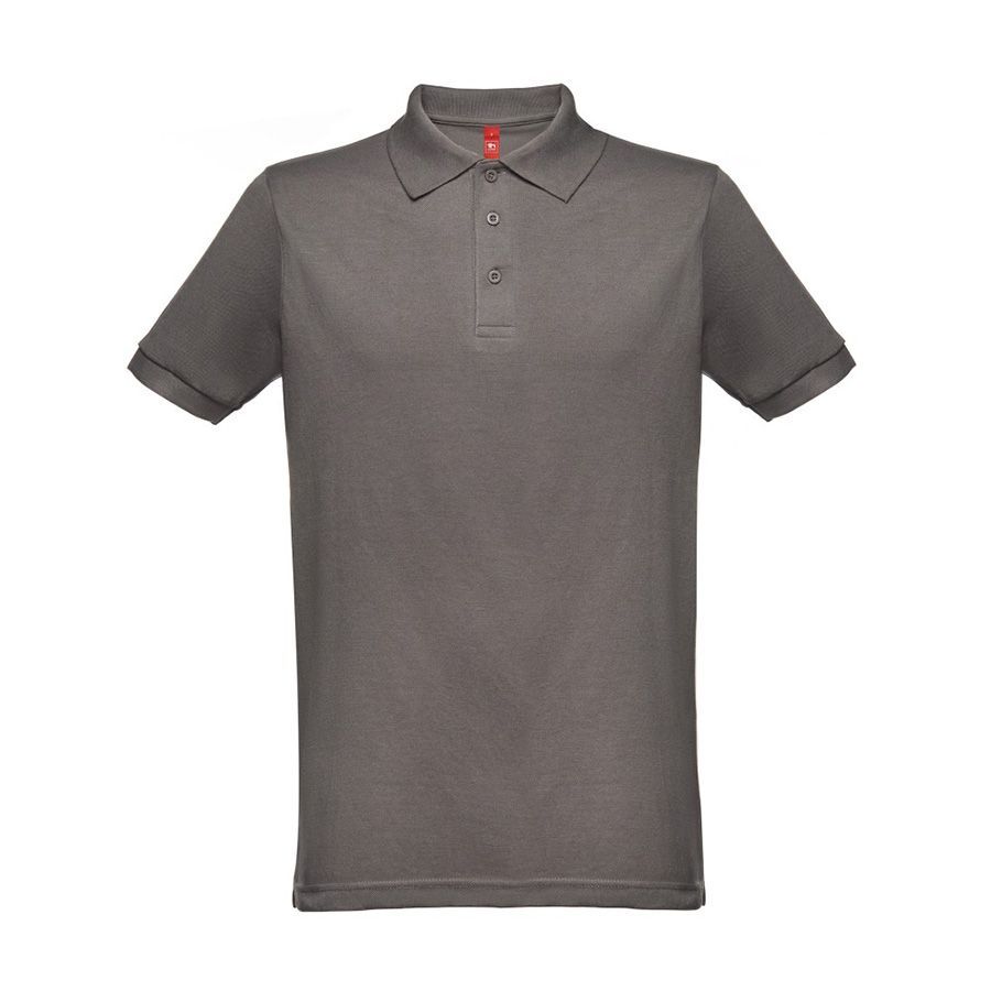 Мужская рубашка-поло из смесовой ткани-пике. Полотно футболки упругое и гладкое благодаря обработке ферментами "enzyme wash" и сохраняет форму при стирке. Модель полуприлегающего силуэта. Благодаря манжете из риба 1х1 рукав смотрится очень аккуратно. Воротник также выполнен из риба 1х1, внутри ворота - укрепляющая тесьма по горловине. Планка с 3 пуговицами в тон изделия. запасная пуговица на ярлыке во внутреннем боковом шве. Цвет, близкий к Pantone Cool Grey 10