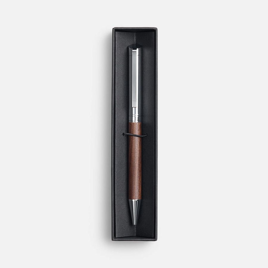 Ручка Waldo — сочетание элегантности и надежности. Корпус ручки выполнен из хромированного металла и орехового дерева, что придает изделию неповторимый теплый оттенок и естественную текстуру.