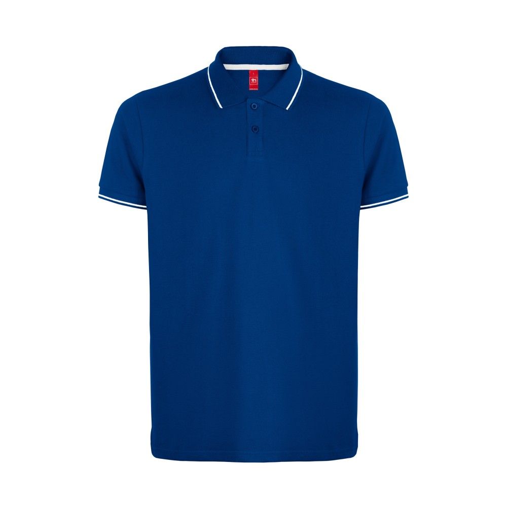 Мужская рубашка-поло из хлопковой ткани-пике. Полотно футболки упругое и гладкое благодаря обработке ферментами "enzyme wash" и сохраняет форму при стирке. Модель полуприлегающего силуэта. Благодаря манжете из риба 1х1 рукав смотрится очень аккуратно. Воротник также выполнен из риба 1х1, внутри ворота - укрепляющая тесьма по горловине. Манжета на рукавах и край воротника выполнены контрастным цветом. Планка с 3 контрастными пуговицами. Запасная пуговица на ярлыке во внутреннем боковом шве.Цвет, близкий к Pantone 294 C