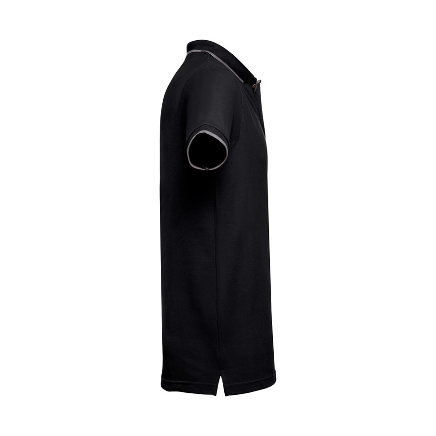 Мужская рубашка-поло из хлопковой ткани-пике. Полотно футболки упругое и гладкое благодаря обработке ферментами "enzyme wash" и сохраняет форму при стирке. Модель полуприлегающего силуэта. Благодаря манжете из риба 1х1 рукав смотрится очень аккуратно. Воротник также выполнен из риба 1х1, внутри ворота - укрепляющая тесьма по горловине. Манжета на рукавах и край воротника выполнены контрастным цветом. Планка с 3 контрастными пуговицами. Запасная пуговица на ярлыке во внутреннем боковом шве.Цвет канта, близкий к Pantone Cool Grey 10