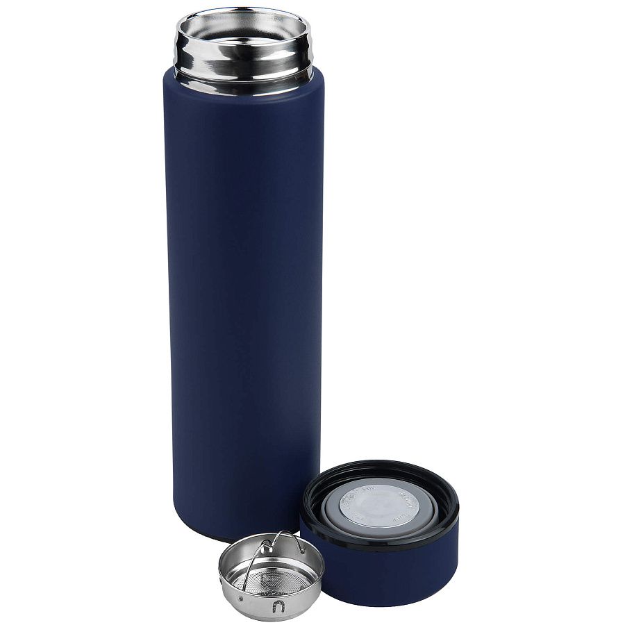 Корпус и крышка термоса - металл с порошковым покрытием; Термос из нержавеющей стали с покрытием soft-touch. Крышка в цвет термоса с покрытием soft-touch в верхней части имеет металлическую пластину для подолнительного брендирования. Крышка герметично закручивается. Термос поставляется в комплекте с ситечком. При комнатной температуре сохраняет тепло до 24 часов.