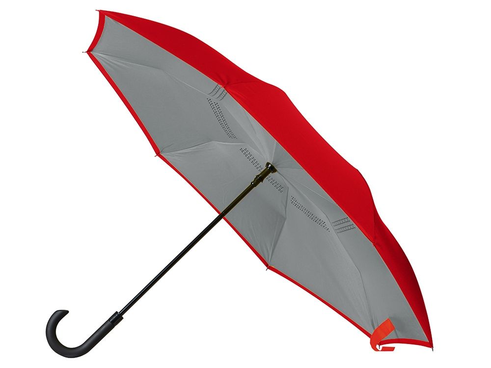 Зонт с обратным сложением складывается "внутрь". Очень удобен в использовании, например, во время посадки в машину при складывании вода остается внутри купола. Для просушки зонт можно поставить вертикально на пол в сложенном виде, что позволяет воде стекать без раскрытия зонта. Двойной купол из 190Т эпонжа. Ручка с мягким покрытием soft-touch для большего комфорта.