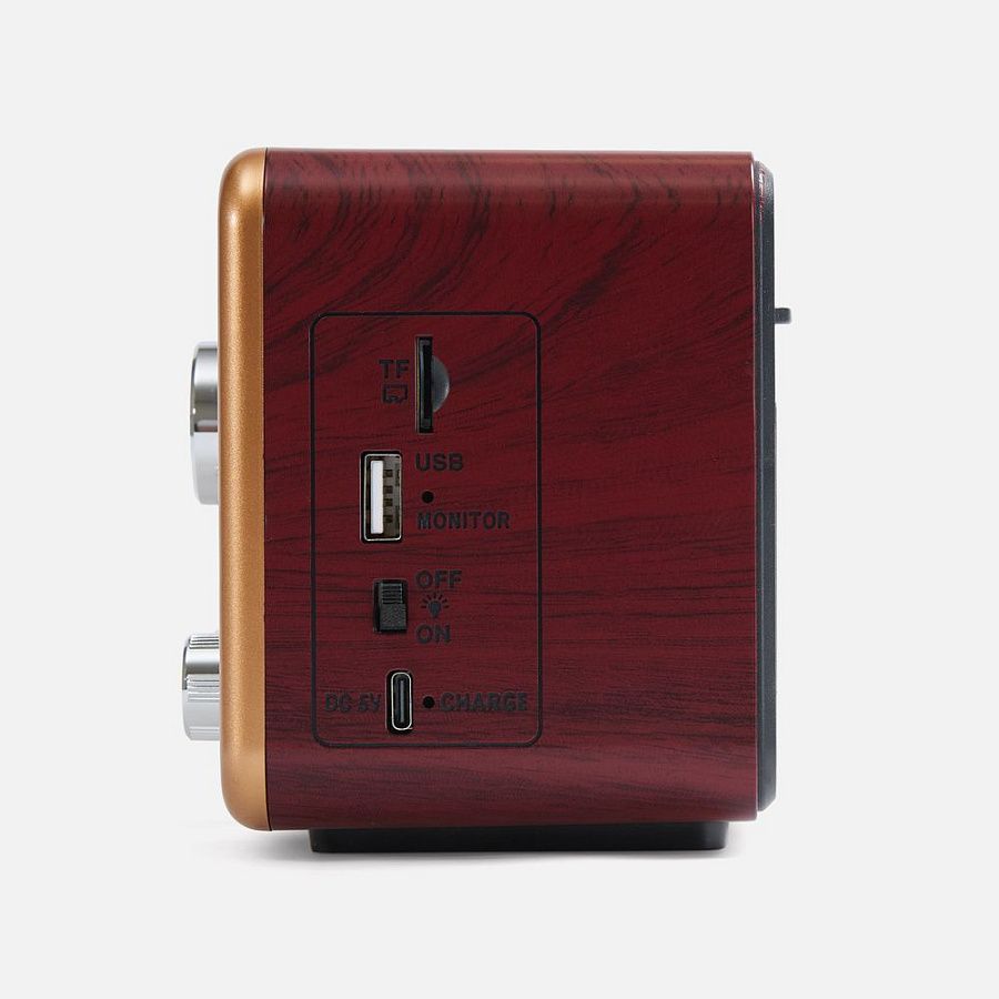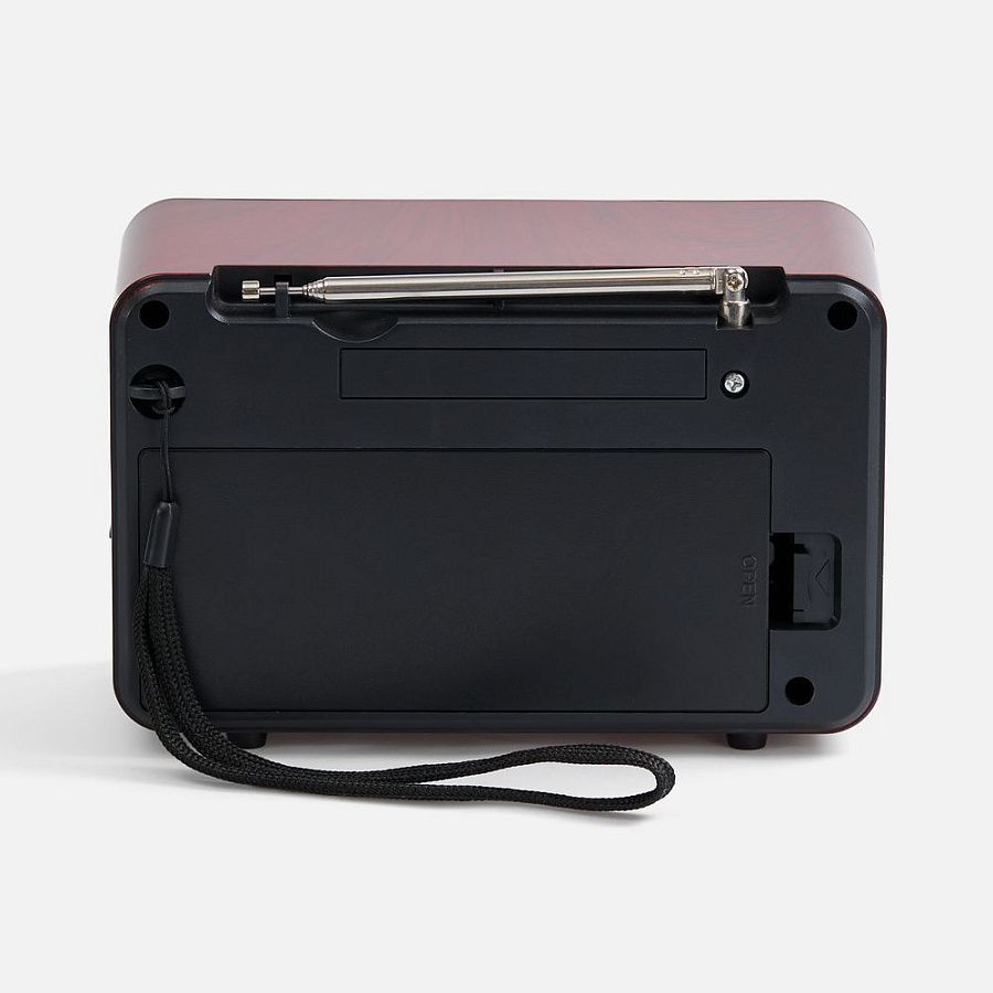 Корпус радиоприемника выполнен из качественного пластика с имитацией натурального дерева.