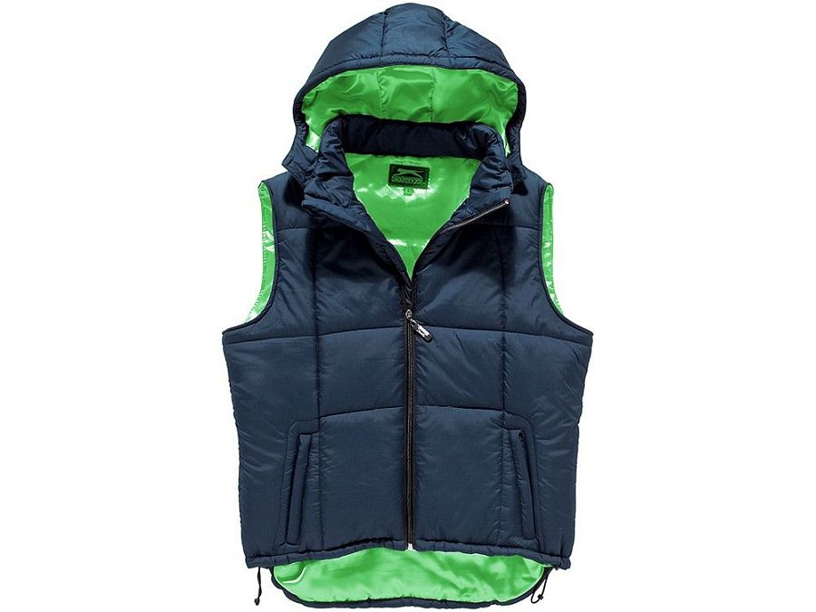 Теплый жилет «Vigour» можно носить в любую погоду. Удобные карманы на молнии для надежного хранения мелочей и большой внутренний карман для документов или денег, шнур с фиксаторами по низу изделия. Задняя часть жилета длиннее передней. Также достоинством этого жилета является съемный капюшон.