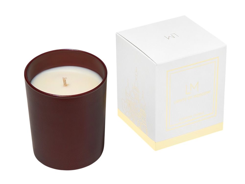 Коллекция аромасвечей “Exclusive” является уникальной не только из-за ароматов коллекции, но и благодаря тщательно разработанному дизайну упаковки, которая является напоминанием о том, что бренд Lights of Moscow - это ручное российское производство в самом центре Москвы. Белая коробка оформлена ярким золотым фольгированием, на левой стороне которой изображен Храм Василия Блаженного - одна из главных достопримечательностей на Красной площади в Москве.