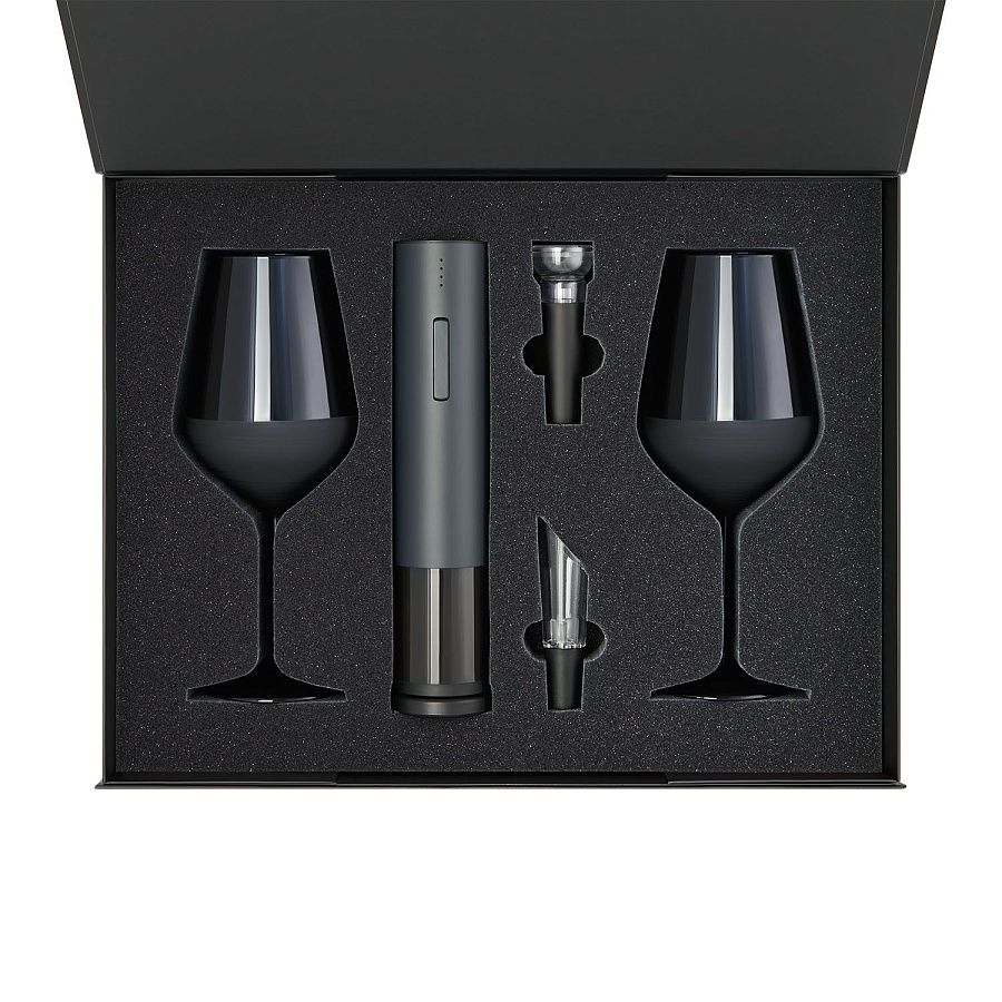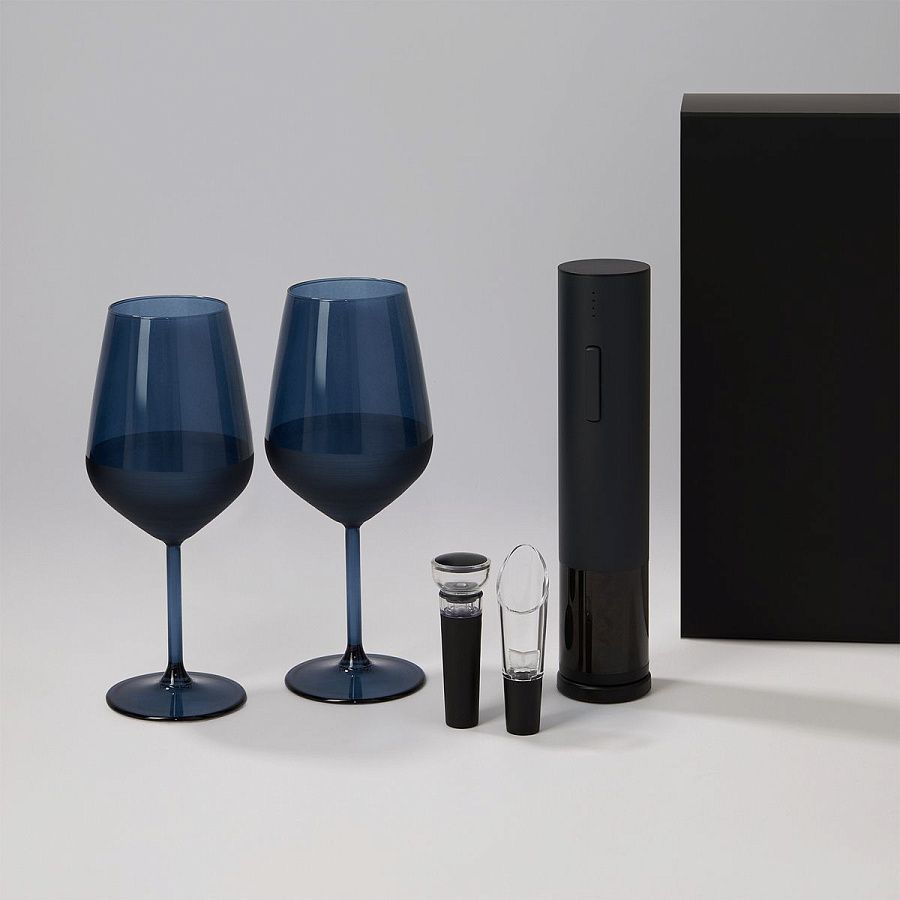 —Подарочный набор 2 бокала для вина Сапфир (Sapphire) + набор для вина с электрическим штопором Сакраменто (Sacramento), в черной коробке, артикул 270423.010