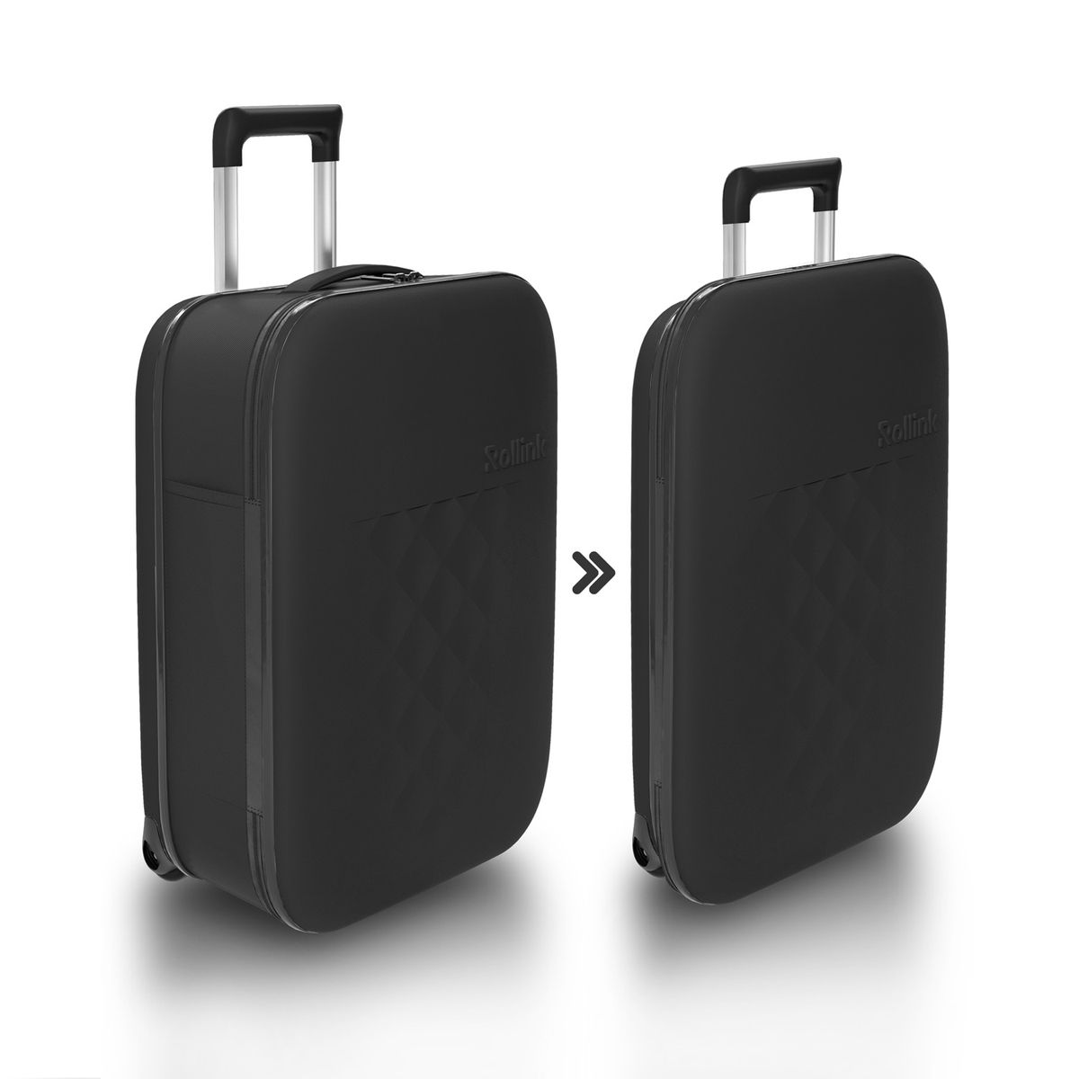 Складной легкий чемодан Rollink Vega II бирюзового цвета. Размер 55х40х20 см. В сложенном виде толщина составляет 5 см, с колёсами 8,5 см. Объем 40 л. Вес 2,4 кг. Жесткие стенки сделаны из поликарбоната повышенной ударопрочности. Бока мягкие, из темно-серого плотного полиэстера с высокой водоотталкивающей способностью. Чемодан уверенно стоит вертикально даже в сложенном состоянии. Внутри три откидывающихся жестких клапана на дне и боках чемодана, крепятся липучками и сохраняют форму чемодана в собранном виде. Эластичная Х-образная стяжка для фиксации предметов внутри чемодана. Боковой easy access карман 12х18,5 см на липучке для документов и телефона. Удлиненная надежная выдвижная телескопическая ручка из алюминия с несколькими уровнями фиксации высоты ручки (от пола 88/96/104 см) для людей разного роста и удобная мягкая ручка сверху чемодана, чтобы было удобно нести его в руках. 2 колеса со специальным покрытием и подшипниками для более плавного и бесшумного передвижения. Высококачественная молния черного цвета. В комплект входит эластичная стяжка для фиксации чемодана в сложенном состоянии. Технические характеристики: Колеса рассчитаны на 32 км Чемодан не разбивается при падении с высоты 90 см Стенки из поликарбоната выдерживают удар 32 кг Телескопическая алюминиевая ручка рассчитана на 300 выдвижений Мягкая ручка рассчитана на 500 поднятий Молния рассчитана на 5000 открываний