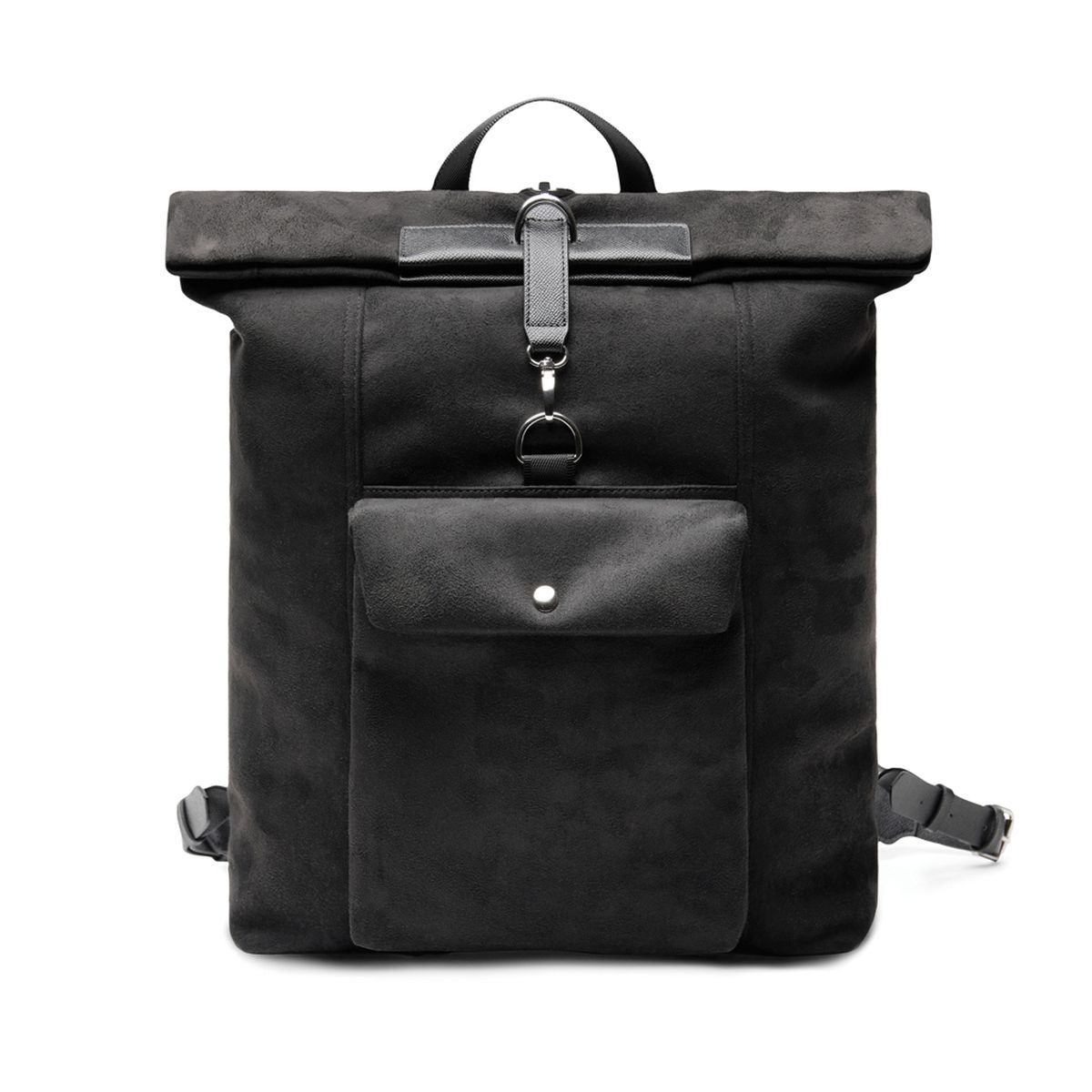 Элегантный рюкзак, подходящий для любого случая. Изготовлен из переработанного полиэстера, внешне и на ощупь напоминающего натуральную замшу. Детали из полиуретана и застежка на пряжку как завершающие стильные акценты.
