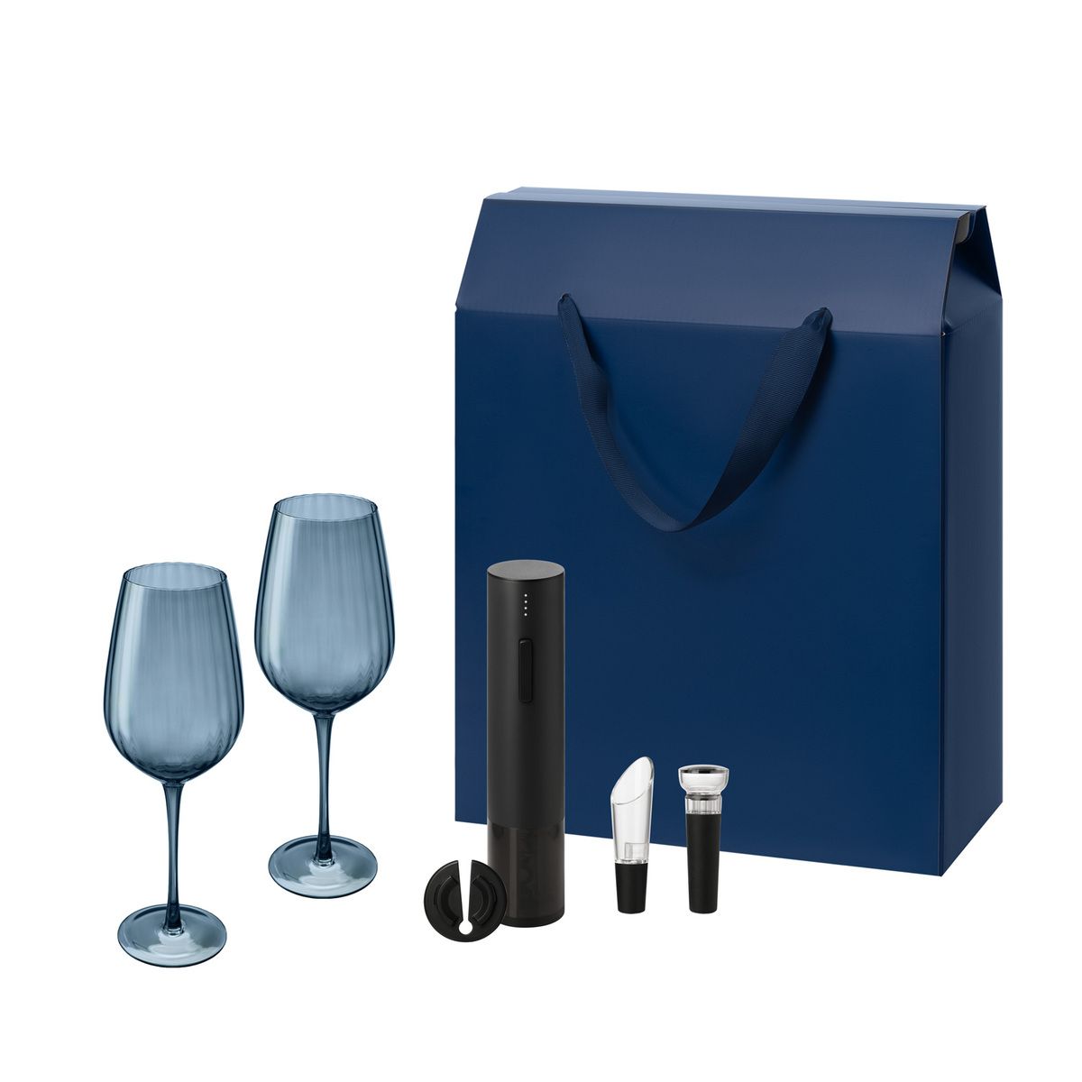 Подарочный набор 2 бокала для вина Sapphire + набор для вина с электрическим штопором Sacramento, в черной коробке