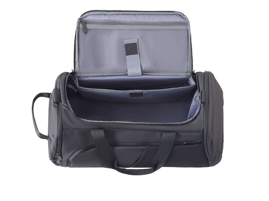 Спортивная сумка-рюкзак 2-в-1 подходит для походов в спортзал и деловых поездок. Чтобы превратить рюкзак в сумку, надо отстегнуть лямки внизу и вложить их в карман на молнии на спинке. В трансформере предусмотрено все для удобства использования: