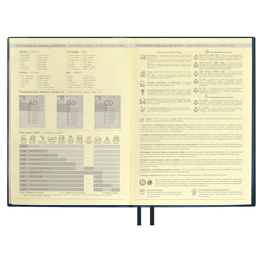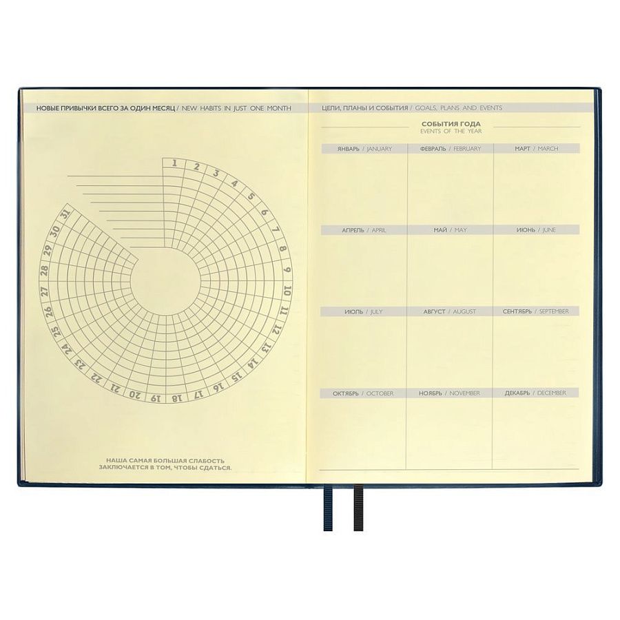 На обложке встречается оттиск от закладки, который разгладится в процессе эксплуатации ежедневника.