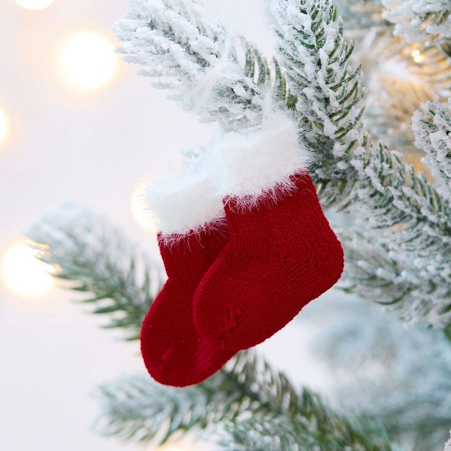 Миниатюрные вязаные подвески «Вьюжка» в виде носочков — это уютное и милое украшение для елки и новогоднего интерьера, отличное дополнение к основному подарку. Они добавят тепла и радости в пространство, создавая праздничное настроение.