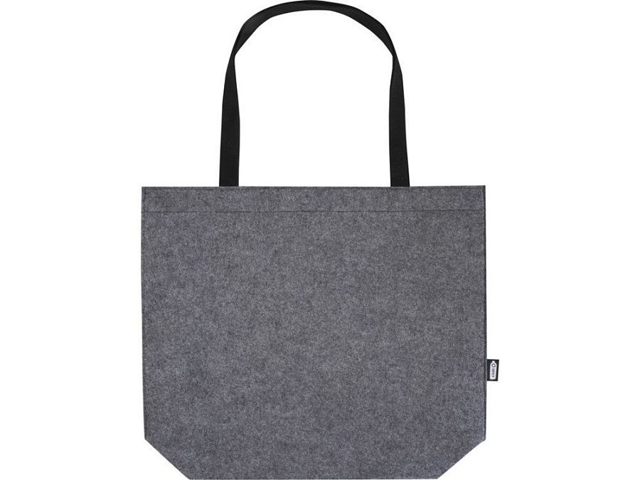 Большая эко-сумка с широким дном и боками из мягкого и прочного высококачественного переработанного фетра, сертифицированного согласно GRS. Сумка имеет большое основное отделение с объемом (до 20 литров), усиленные тканые хлопковые ручки (30 x 2,5 см) для оптимального удобства переноски и застежку-кнопку в верхней части. GRS certified recycled polyester.