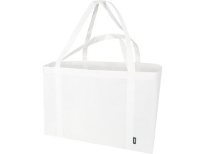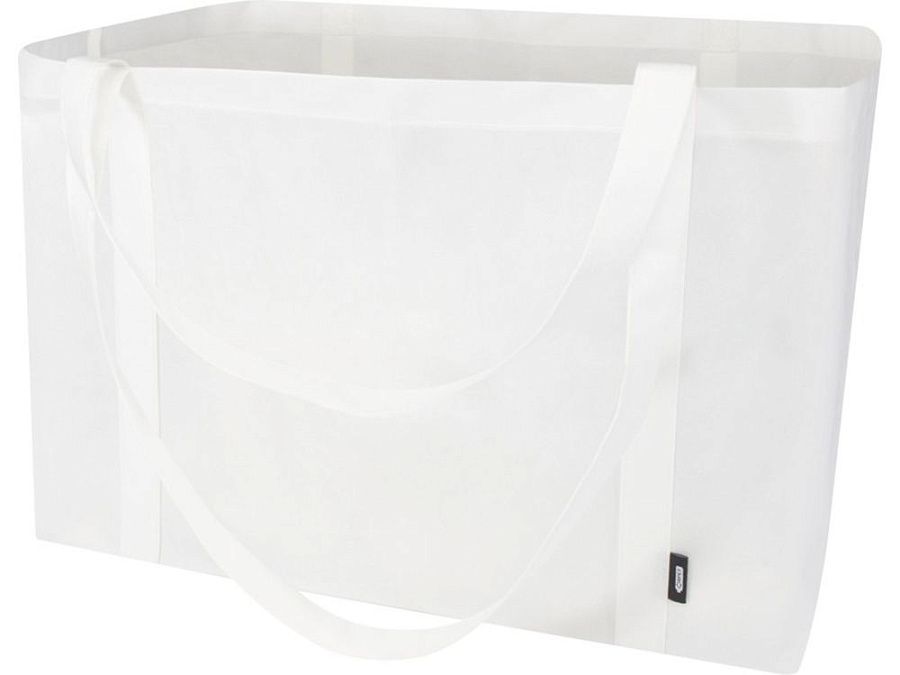 Сделанная из прочного и стойкого к разрывам нетканого RPET, эко-сумка Jumbo из переработанного материала, сертифицированного согласно GRS, имеет очень большую вместимость до 65 литров и прекрасно подходит для различных мероприятий, таких как походы за покупками в супермаркет или на пляж и пикник. Оснащена усиленными короткими ручками (24 см) и длинными ручками (37 см) для максимального удобства переноски. Легко складывается и убирается, когда не используется. Выдерживает вес до 15 кг. GRS certified recycled polyester.