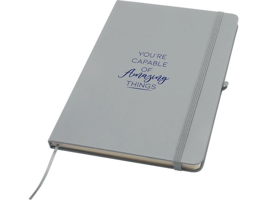 Блокнот Spectrum Plus формата А5 в твердой обложке с закругленными углами — это не только необходимая вещь в офисе, но и прекрасная возможность для продвижения вашего бренда. Картонный блокнот имеет мягкую на ощупь обложку и 80 линованных листов кремового цвета плотностью 70 г/м², идеально подходит для записи быстрых идей или длинных заметок. Блокнот оснащен петлей для ручки, эластичной застежкой, ленточкой-закладкой и карманом-гармошкой.