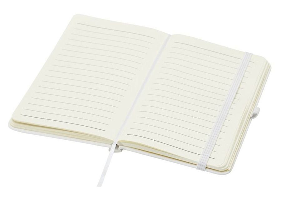Блокнот Spectrum Plus формата А5 в твердой обложке с закругленными углами — это не только необходимая вещь в офисе, но и прекрасная возможность для продвижения вашего бренда. Картонный блокнот имеет мягкую на ощупь обложку и 80 линованных листов кремового цвета плотностью 70 г/м², идеально подходит для записи быстрых идей или длинных заметок. Блокнот оснащен петлей для ручки, эластичной застежкой, ленточкой-закладкой и карманом-гармошкой.