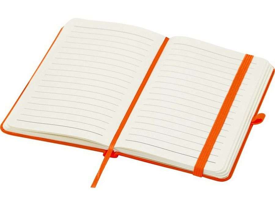 Блокнот Spectrum Plus формата А5 в твердой обложке с закругленными углами — это не только необходимая вещь в офисе, но и прекрасная возможность для продвижения вашего бренда. Картонный блокнот имеет мягкую на ощупь обложку и 80 линованных листов кремового цвета плотностью 70 г/м², идеально подходит для записи быстрых идей или длинных заметок. Блокнот оснащен петлей для ручки, эластичной застежкой, ленточкой-закладкой и карманом-гармошкой.