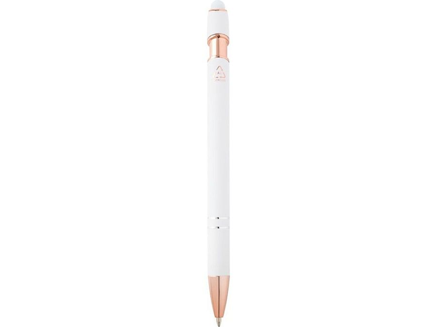 Шариковая ручка Nanna с покрытием из розового золота имеет корпус из переработанного алюминия и сенсорный стилус из силикона. Переработанный алюминий уменьшает количество отходов на свалках и помогает сохранять природные ресурсы для сокращения выбросов парниковых газов. Цвет чернил: синий. Длина непрерывной линии: 800 метров. Размер пера: 1,0 мм. Recycled Aluminium.